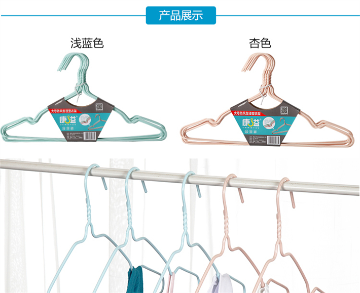 康溢大号防风型浸塑衣架(8支)KY-99335