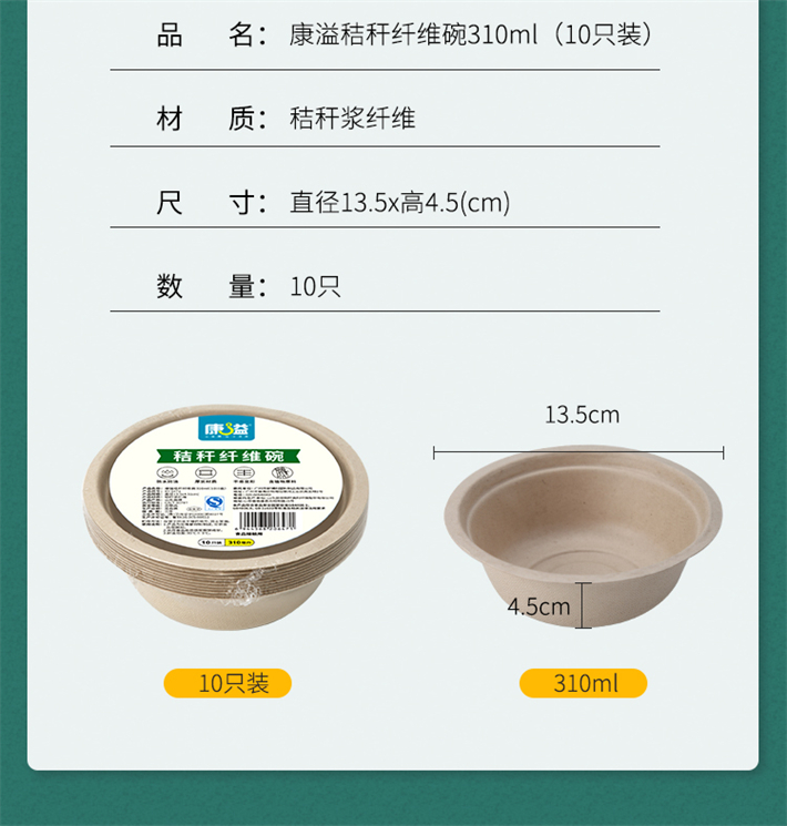 康溢秸秆纤维碗310ml(热收缩10只装)KY-6471