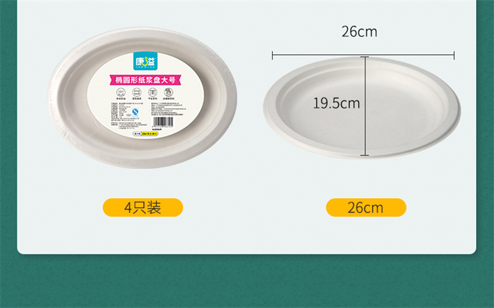 康溢椭圆形纸浆盘大号26cm(热收缩4只装)KY-6525