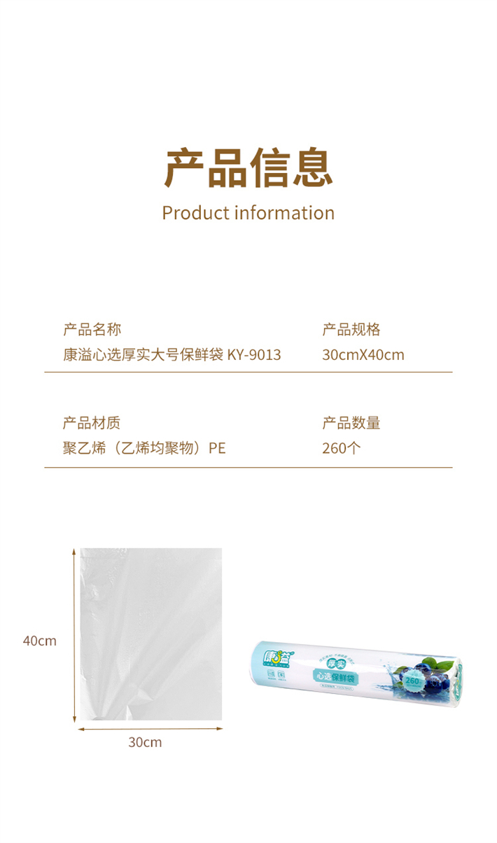 康溢心选厚实大号保鲜袋30cm*40cm(260个)KY-9013